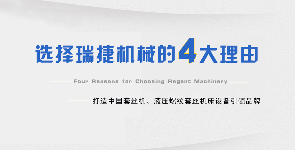 瑞捷套絲機設備采用液壓裝置成功解決勞動強度大,效率低,且無定位裝置,絲扣長短難控制等弊端,可一次型完成螺紋加工成型且螺紋牙形飽滿光滑。套絲機的主要部件及結構是由套絲機床的傳動系統,支架系統,切線板牙頭,定位裝置及液壓系統組成,工作時只要將工件裝入夾鉗,其余程序將自動完成,操作簡單,通俗易懂,瑞捷套絲機廠家直銷,質量有保證,減少不必要的中間環(huán)節(jié),為客戶帶來實實在在的優(yōu)惠政策,歡迎新老客戶洽談合作事宜和來電咨詢.