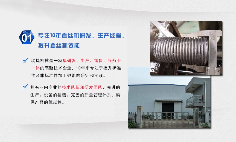 邢臺市瑞捷機械制造有限公司專業生產圓鋼套絲機,鋼管套絲機兩大系列,其特點主要展現為機頭的優(yōu)化改進,大幅度提高了加工螺紋絲頭的精確度和工作效率,有效解決了本行業在加工絲扣上端部易扭轉變形(絲扣加易擴口)、配件損耗高、加工效率低的技術難題。